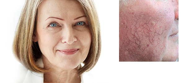 Telangiectasias, (commonly known as spider veins) form on the face when blood vessels become dilated. The most common causes are aging, alcohol consumption, injury to the face, changes in weather, and sun exposure.